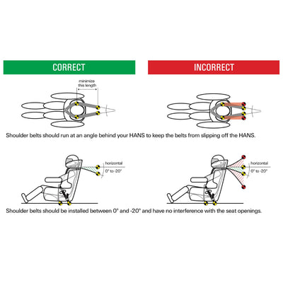 The first requirement when using an FHR device is a properly prepared vehicle. Some modifications to your car may be required, such as replacing the seats. The seat must have dedicated harness openings (either single or dual) for the shoulder straps to travel through which ensures the harness stays in place during an accident. The harness itself must be a 4,5, or 6-point Frontal Head Restraint approved belt properly installed to the manufacturer's specs.